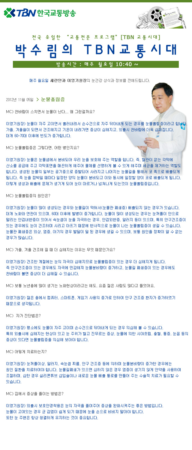 11/05 눈물흘림증 - 언론보도
