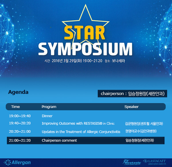 2016년 3월 29일(화) Allergan Korea가 진행하는 STAR SYMPOSIUM에