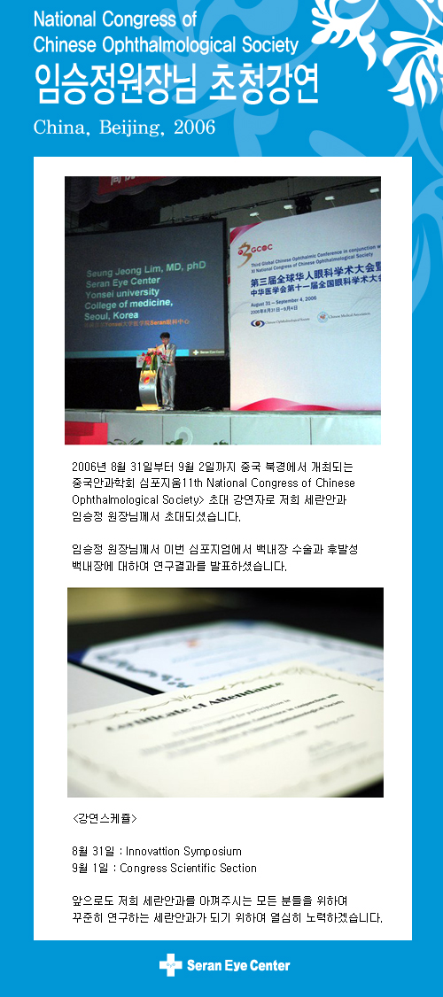 [중국안과학회] 임승정 원장님 초청강연 - 병원소식
