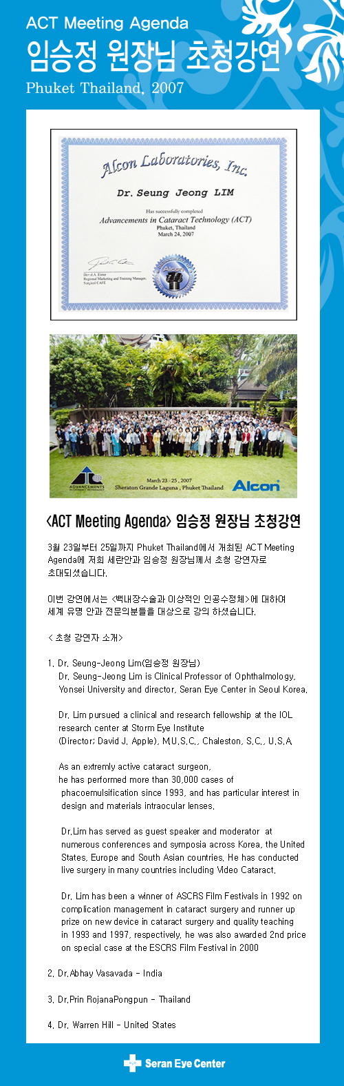 [ACT Meeting Agenda] 임승정 원장님 초청강연 - 병원소식