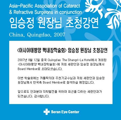 [아시아태평양 백내장학술회] 임승정 원장님 한국측 Board Member로 참석 - 병원소식