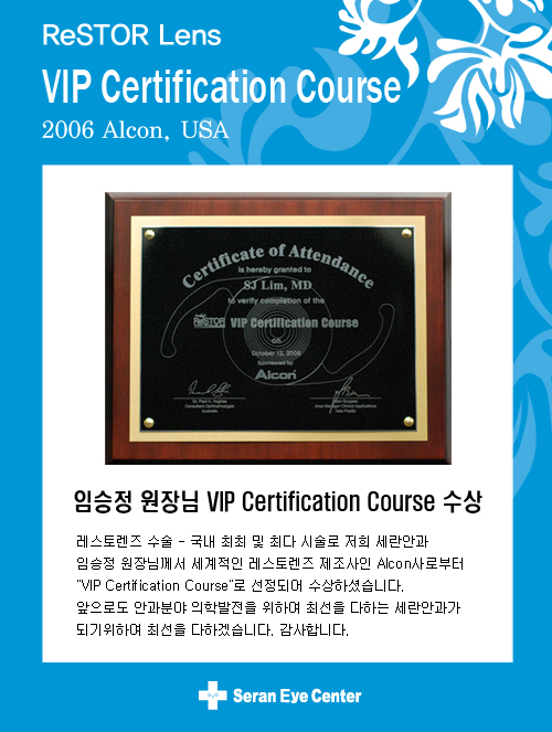 [레스토렌즈] VIP Certification Course 수상 - 병원소식